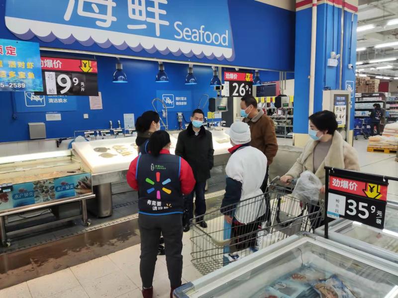 检查组一行先后到银河菜市场、沃尔玛超市(梅山路店)、国胜大药房(大钟楼店)等地,重点检查了商场超市疫情防控、冷链食品管理、特种设备安全、民生商品价格等执行情况,零售药房疫情防控和“一退两抗”药品销售情况。