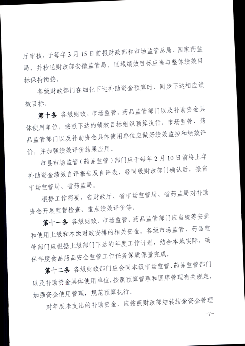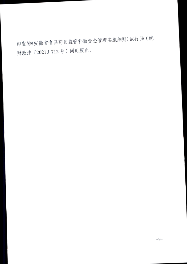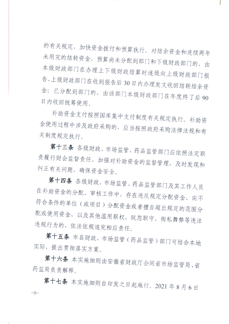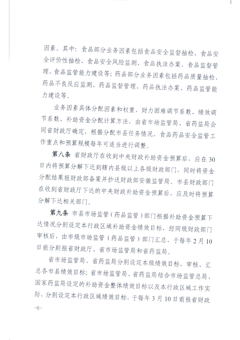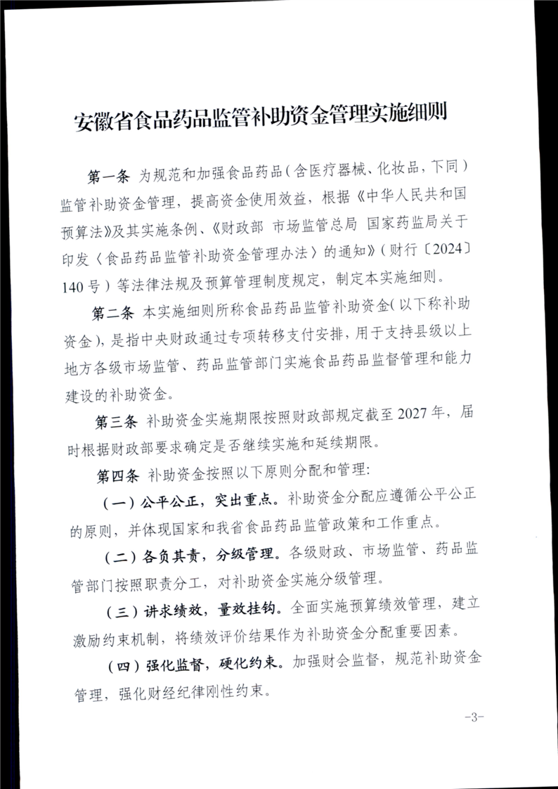 关于印发《安徽省食品药品监管补助资金管理实施细则》的通知