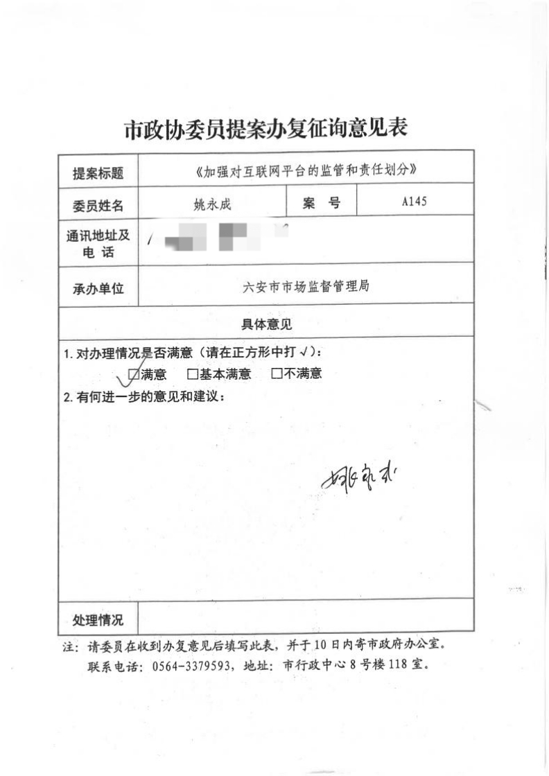 关于市政协六届四次会议第A145号提案办理情况的函和办复征询意见表