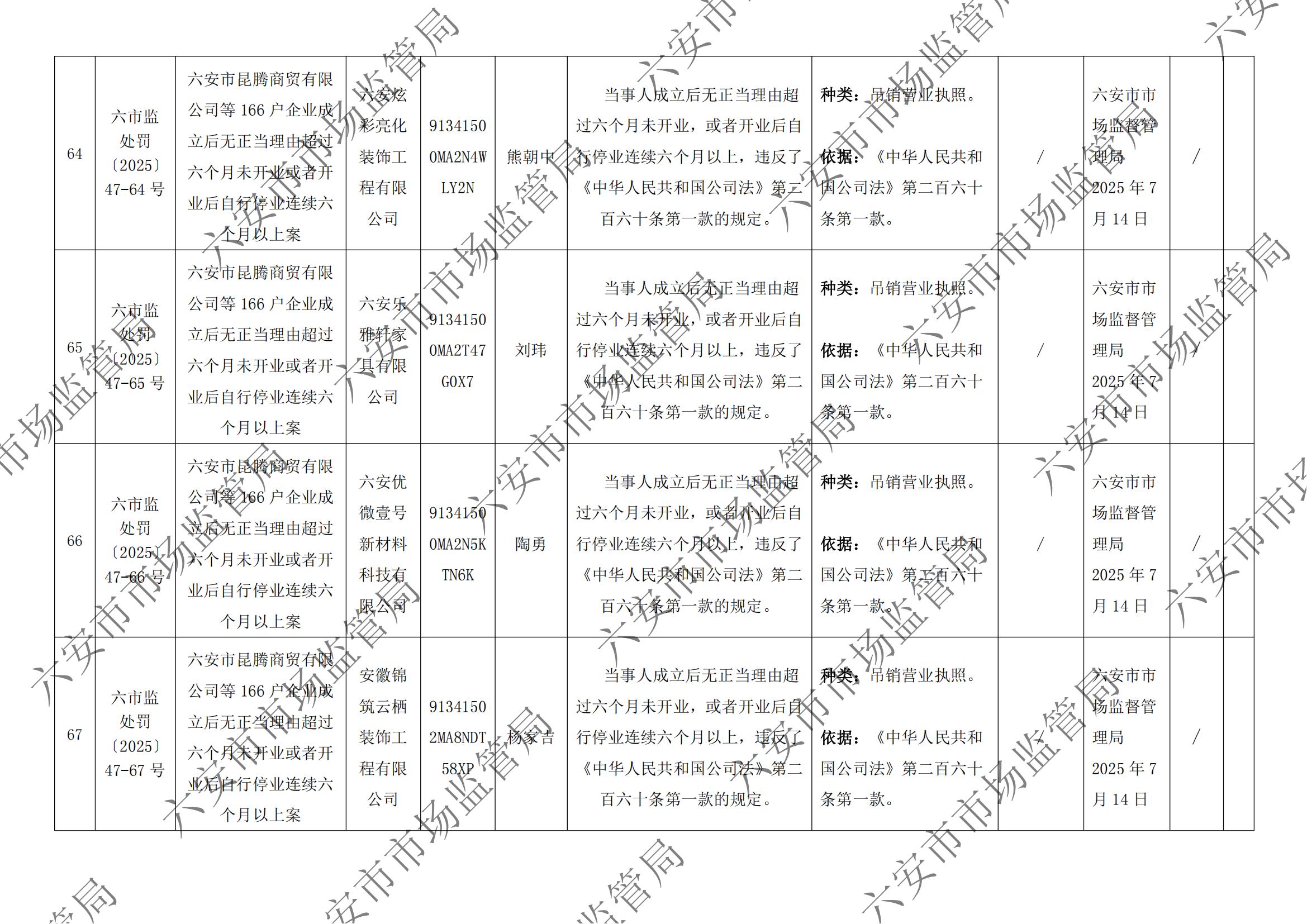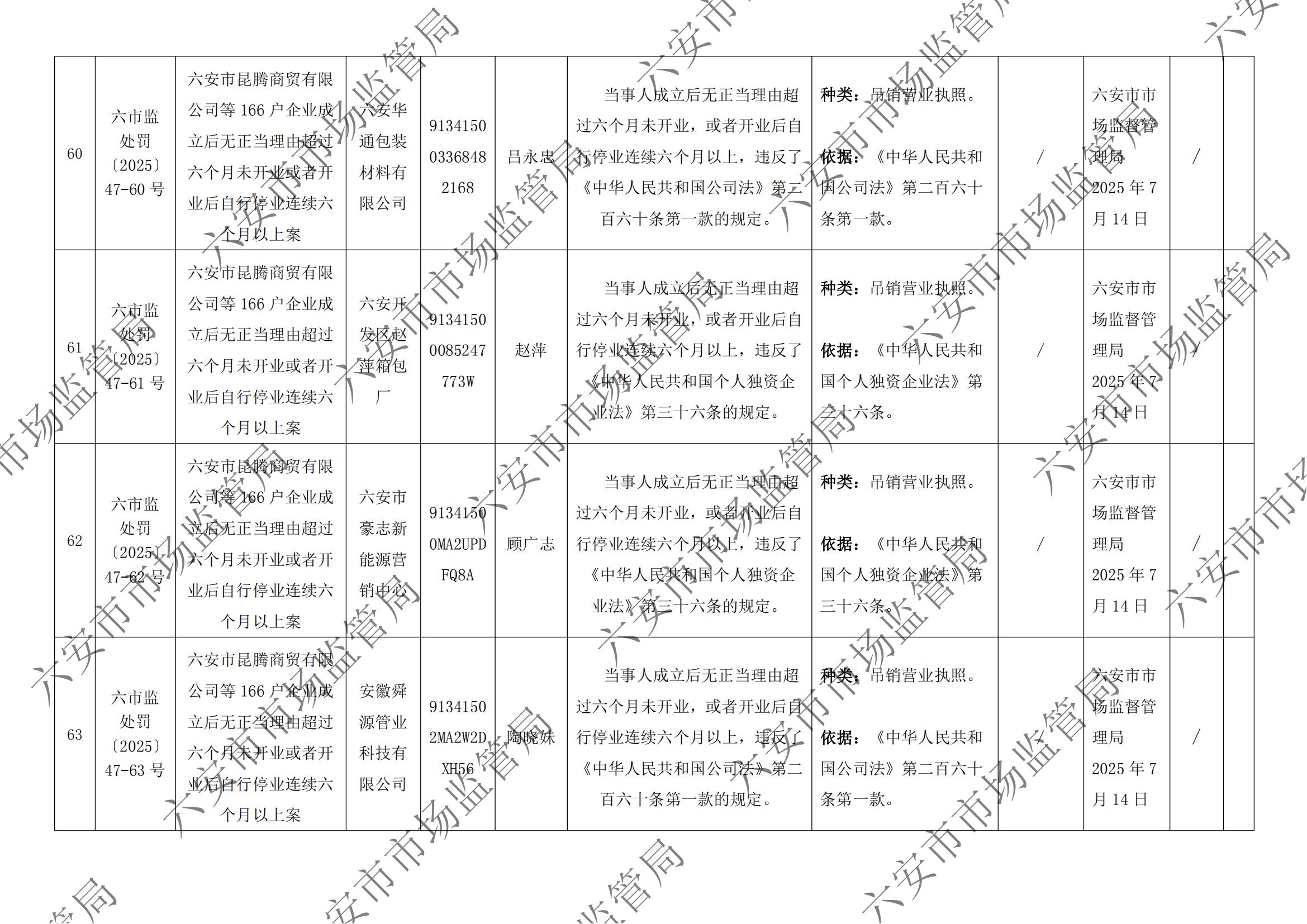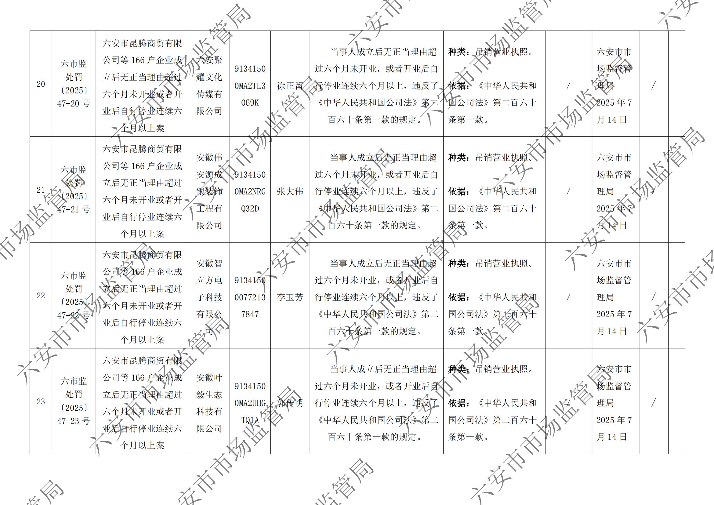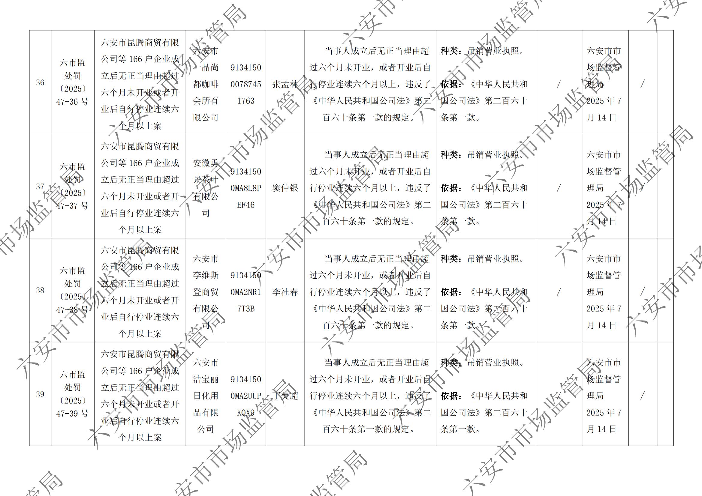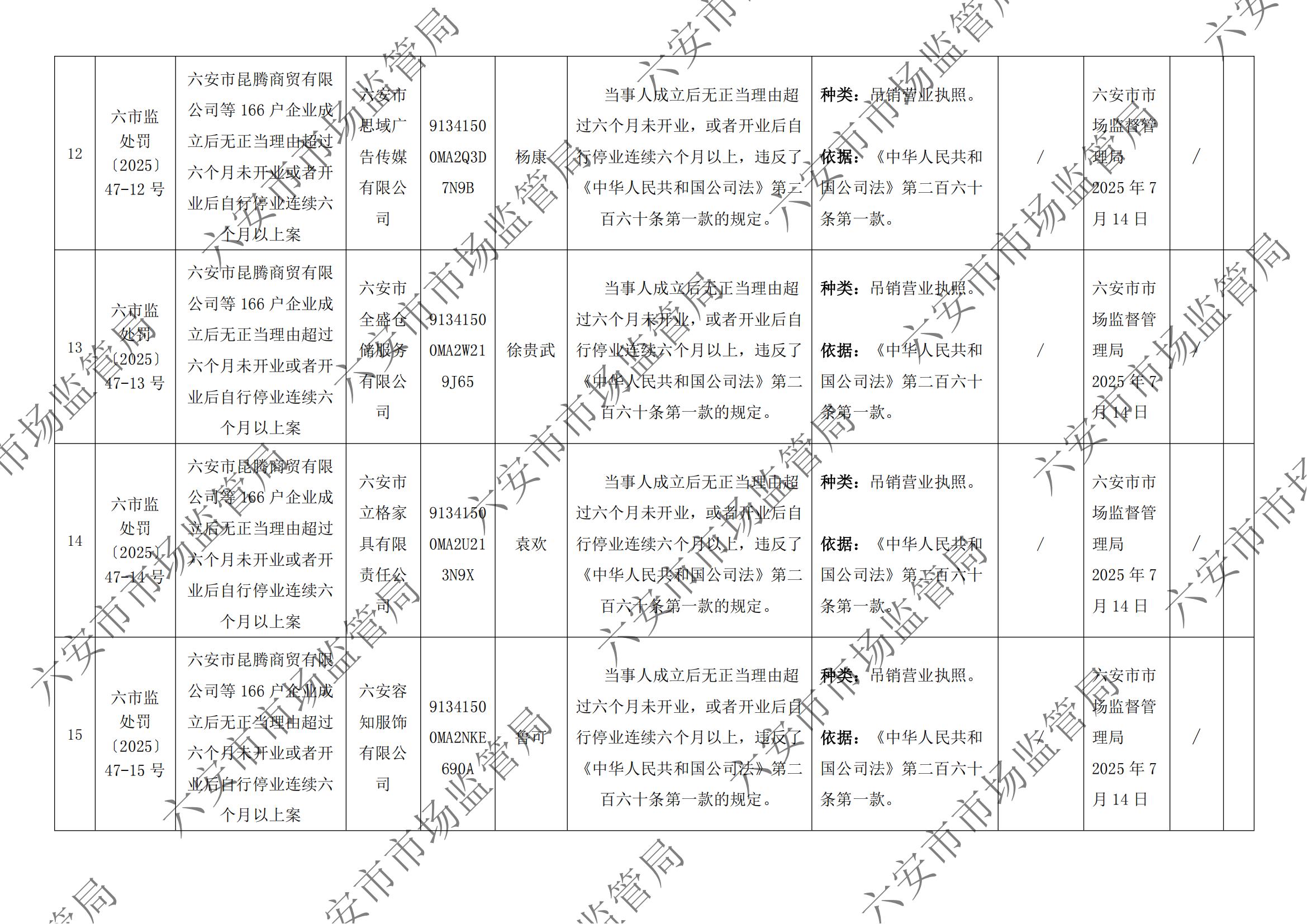 六安市市场监督管理局行政处罚案件信息公开表六市监处罚〔2025〕47号