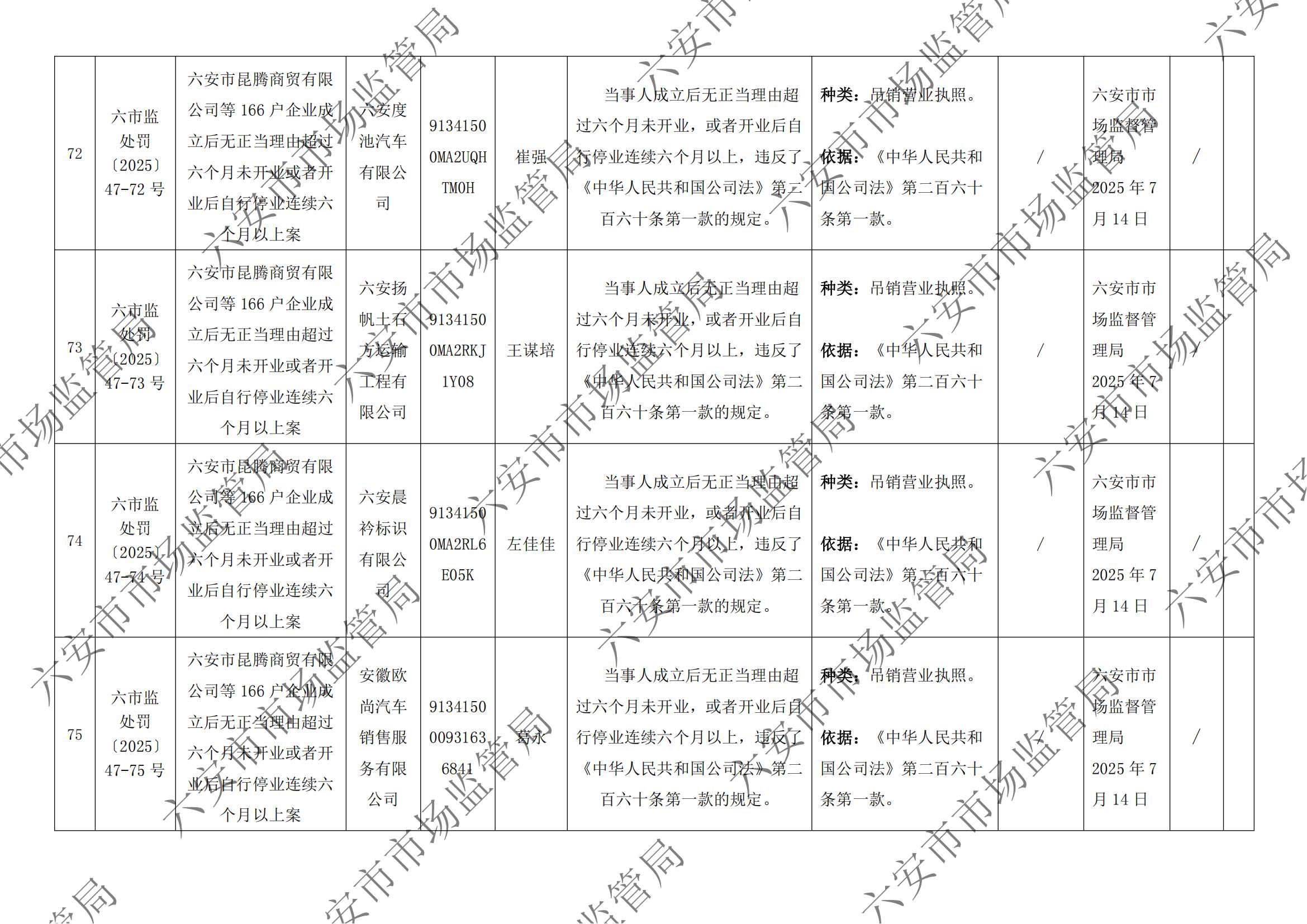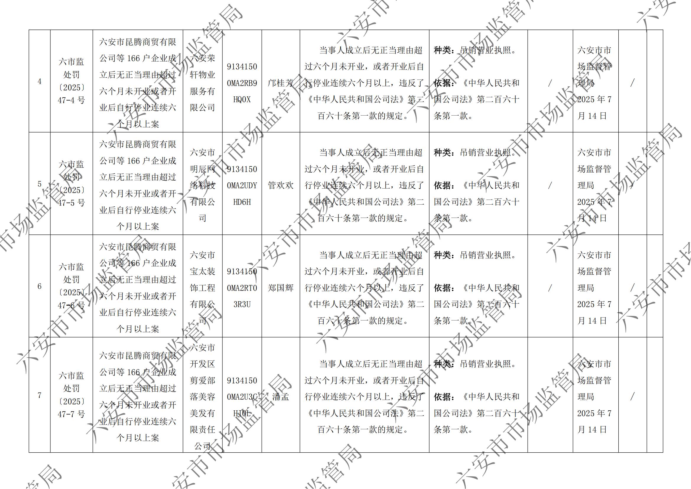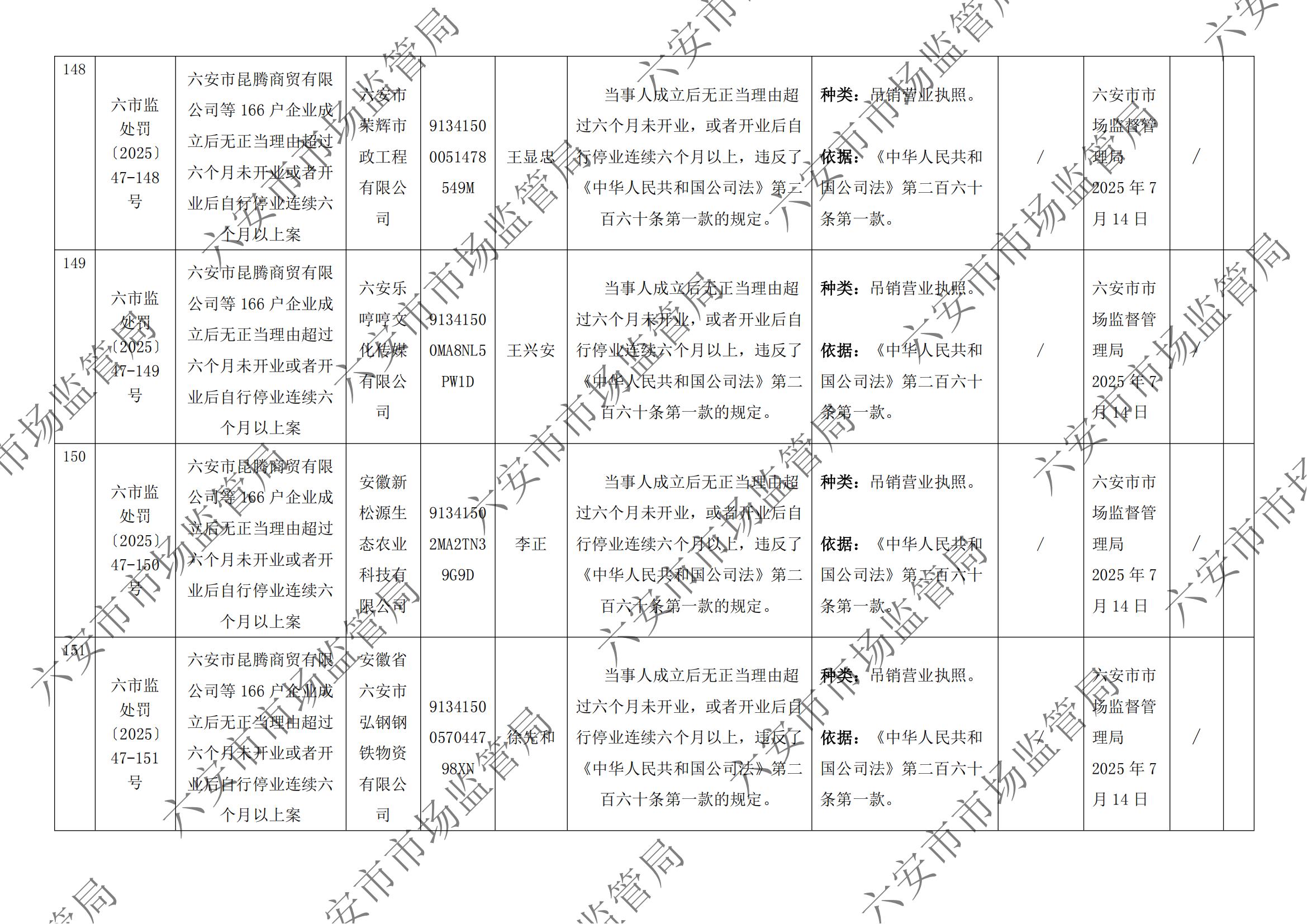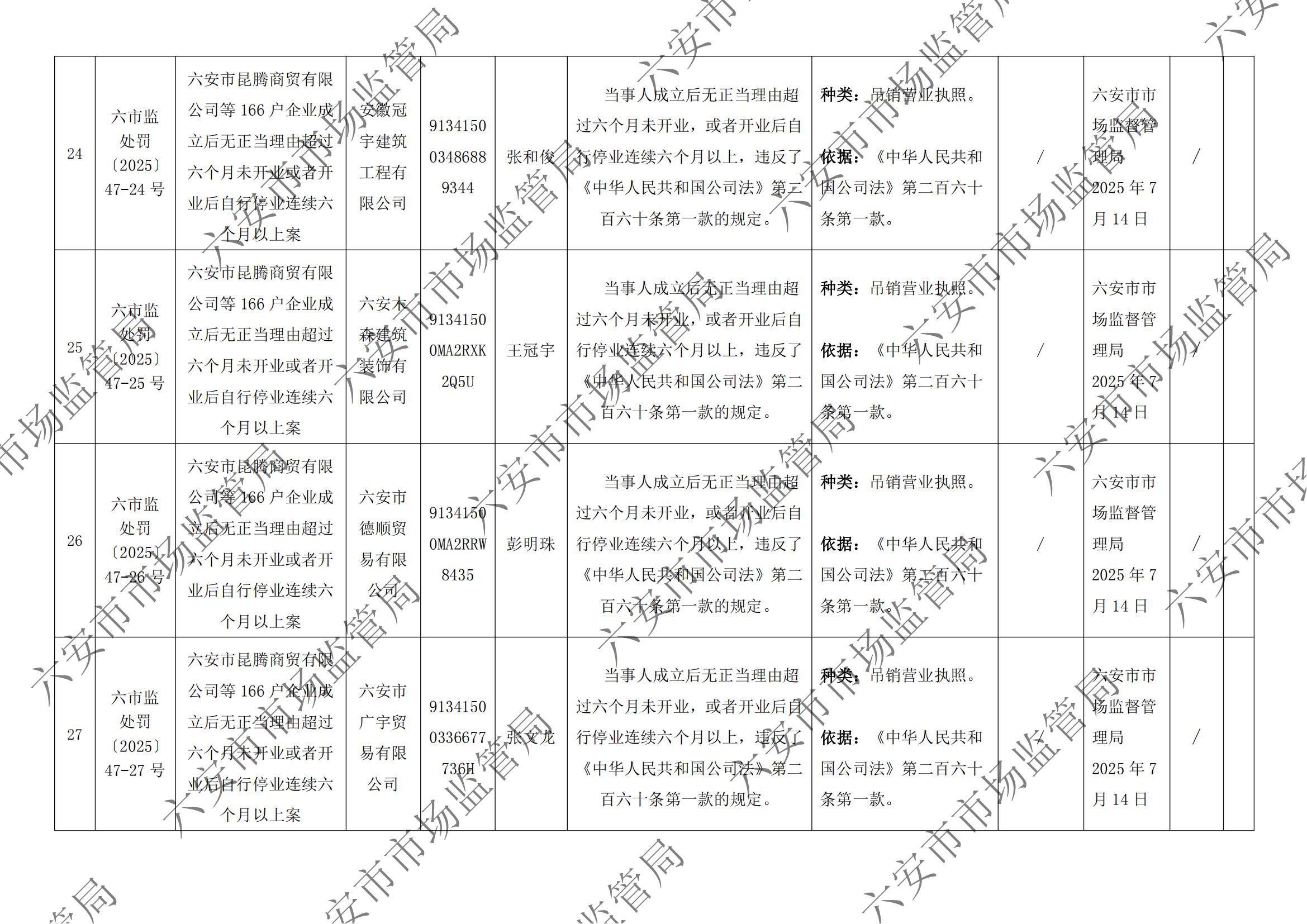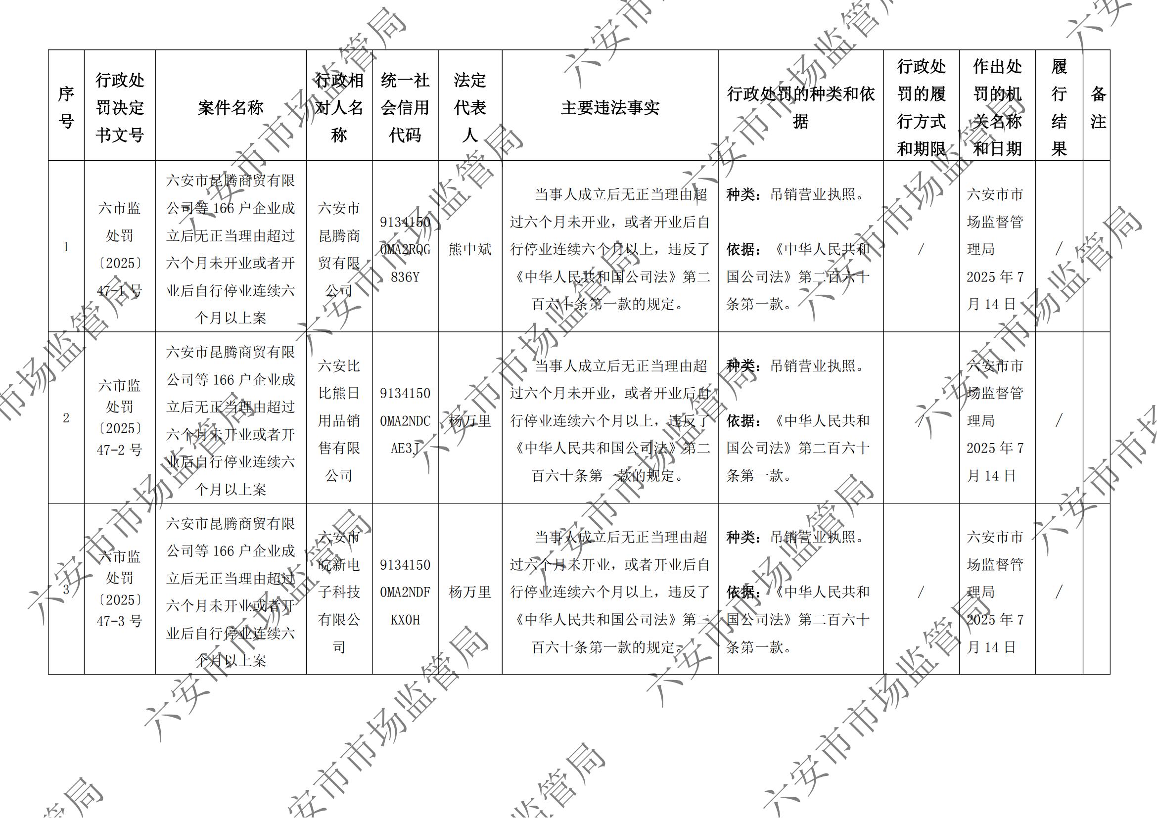 六安市市场监督管理局行政处罚案件信息公开表六市监处罚〔2025〕47号