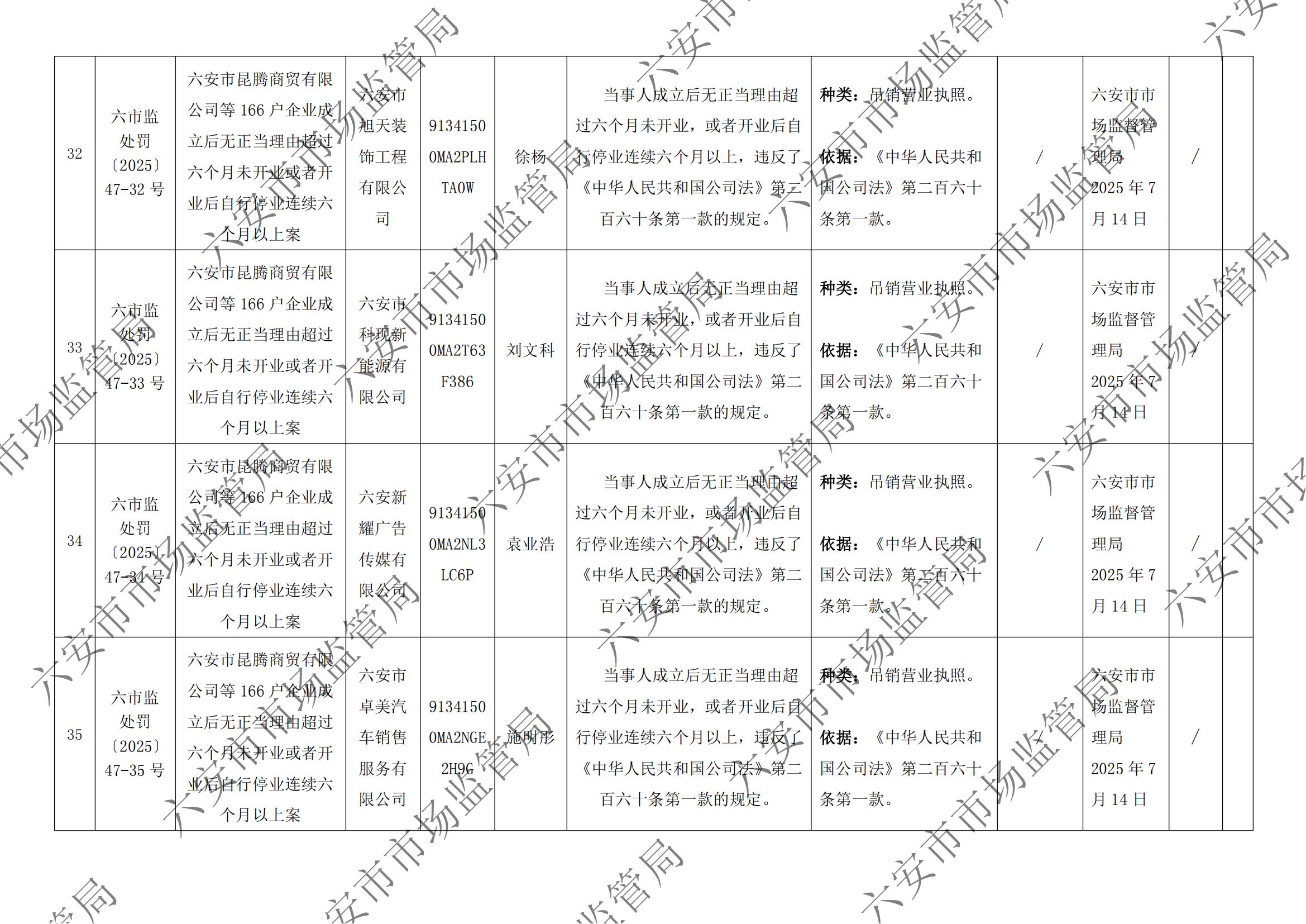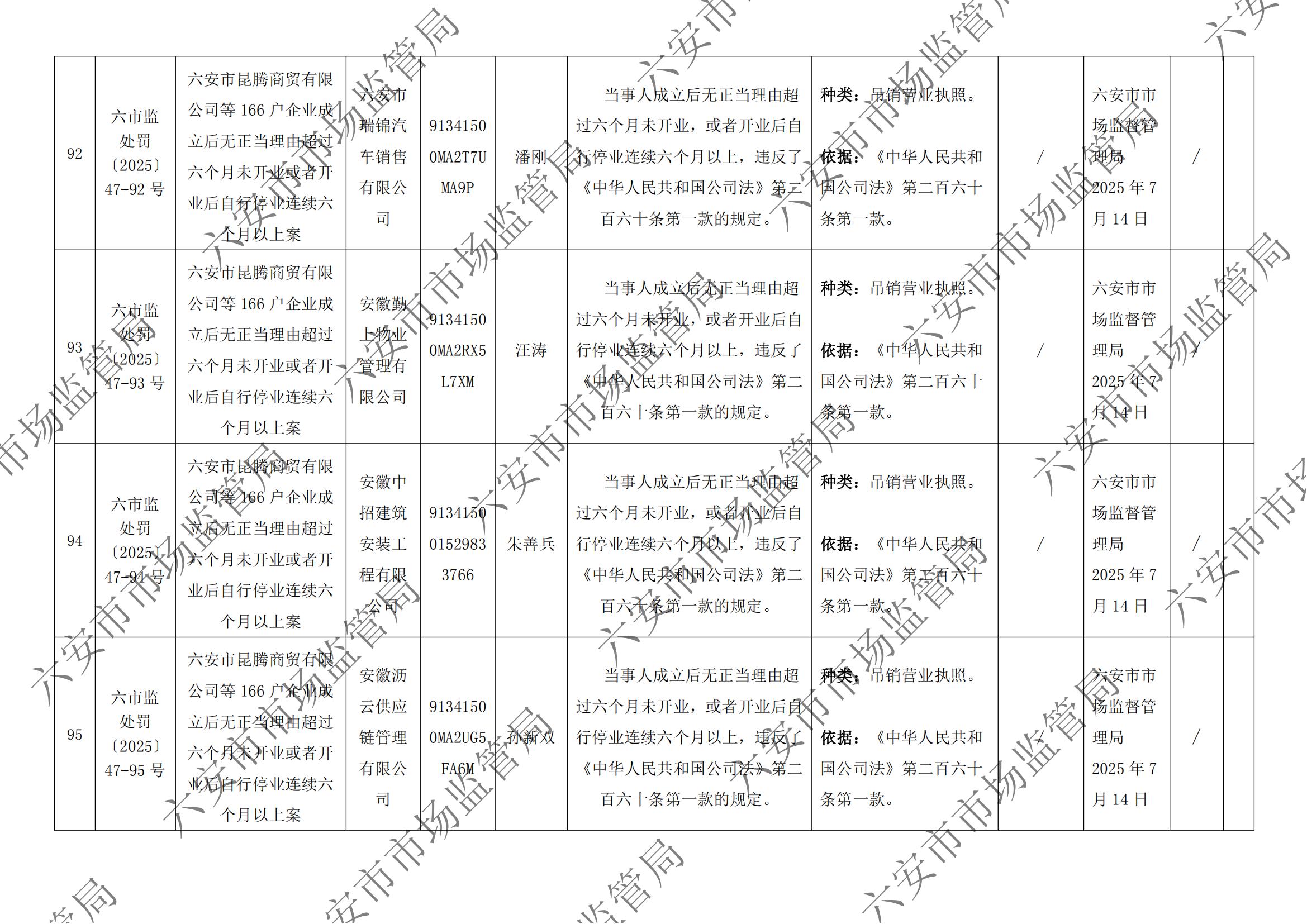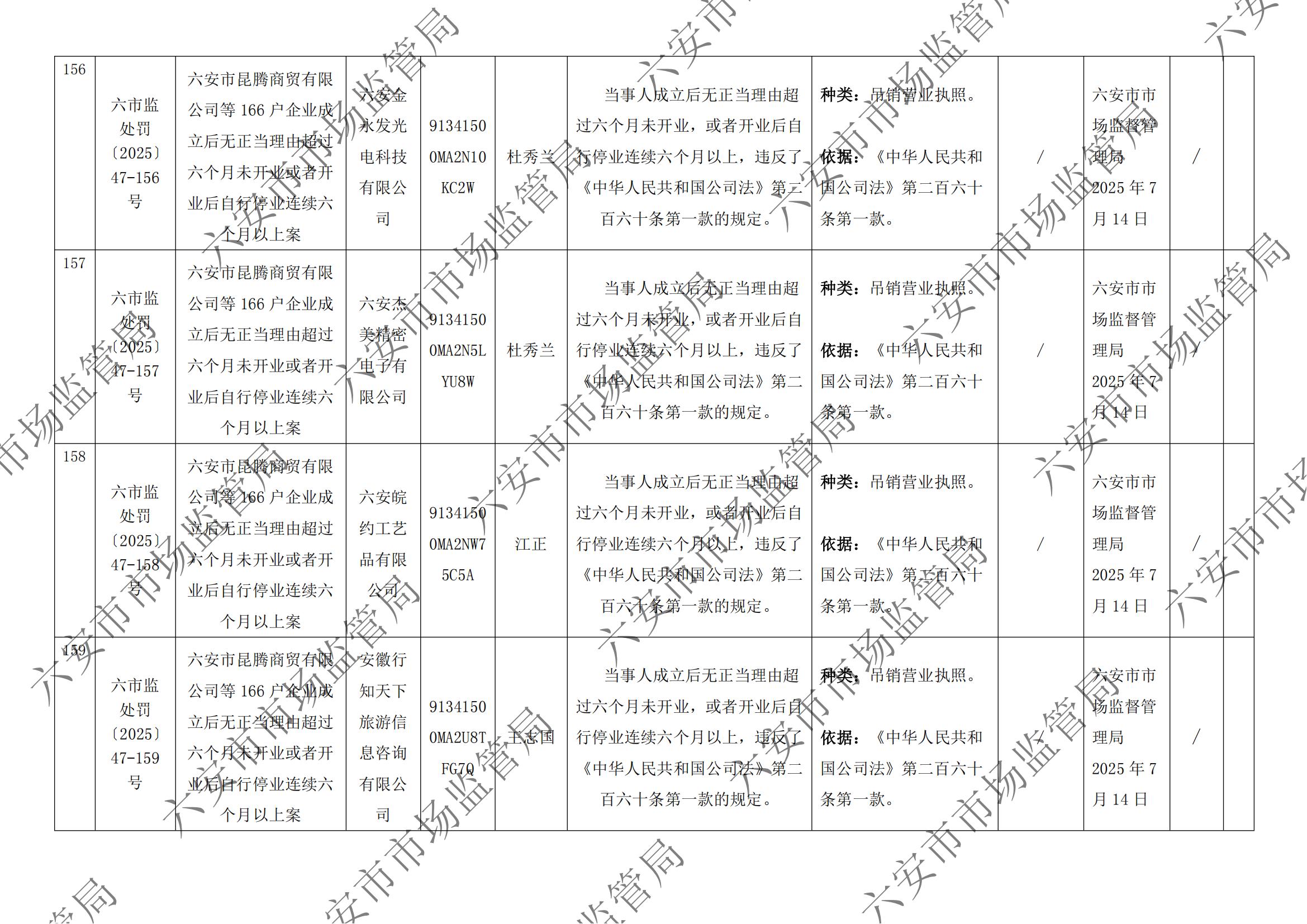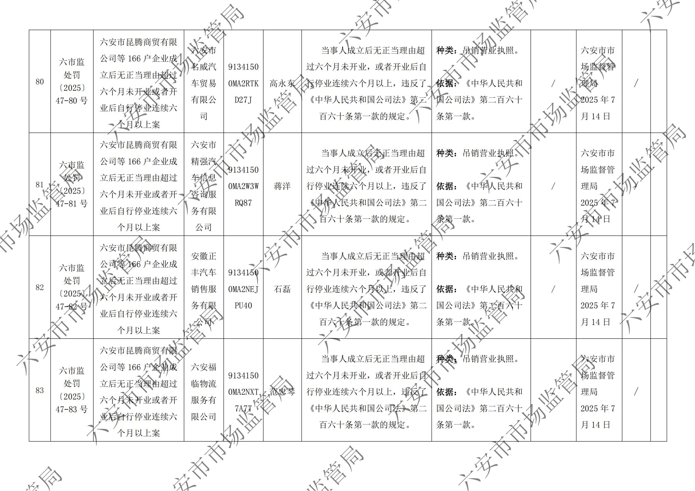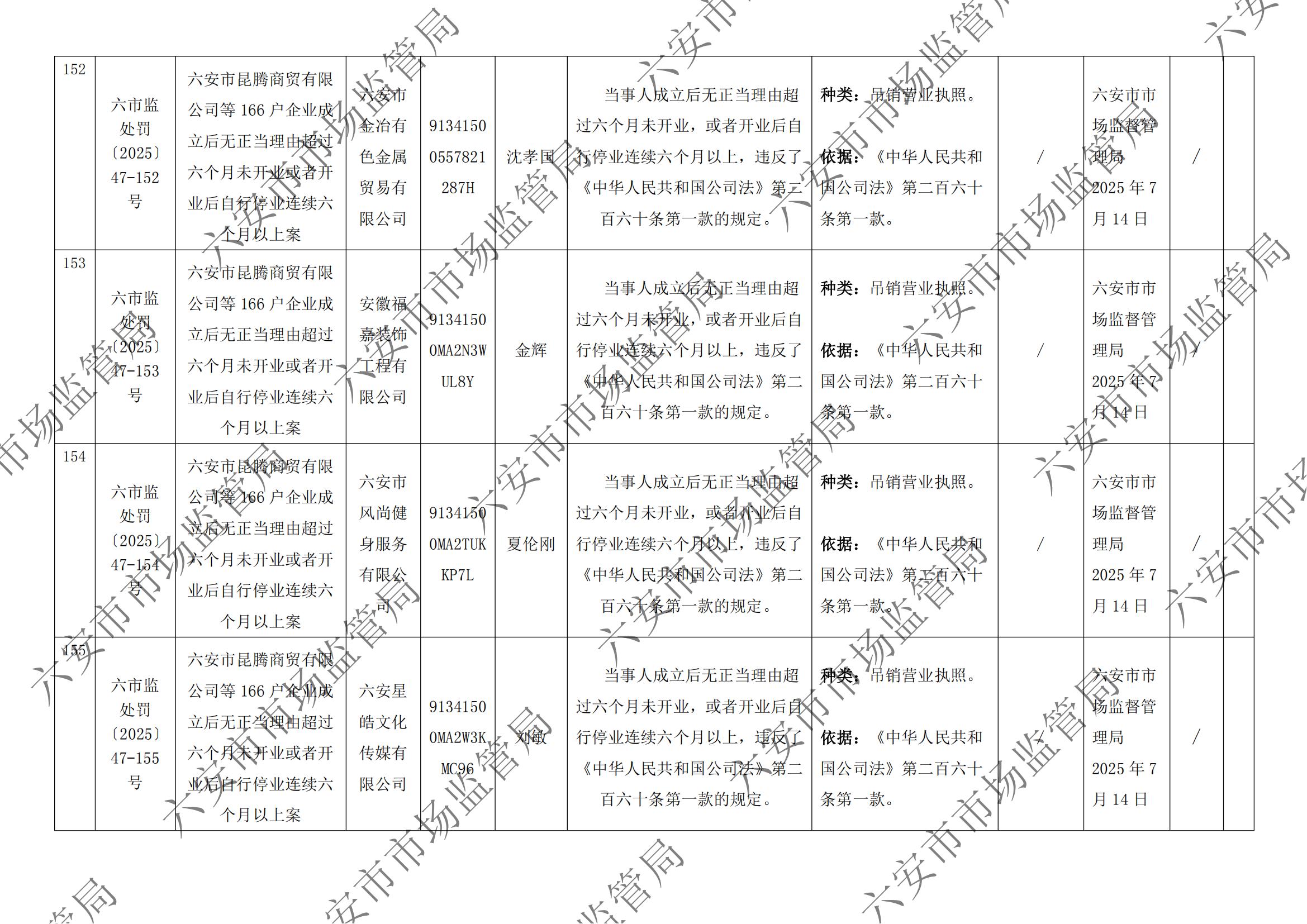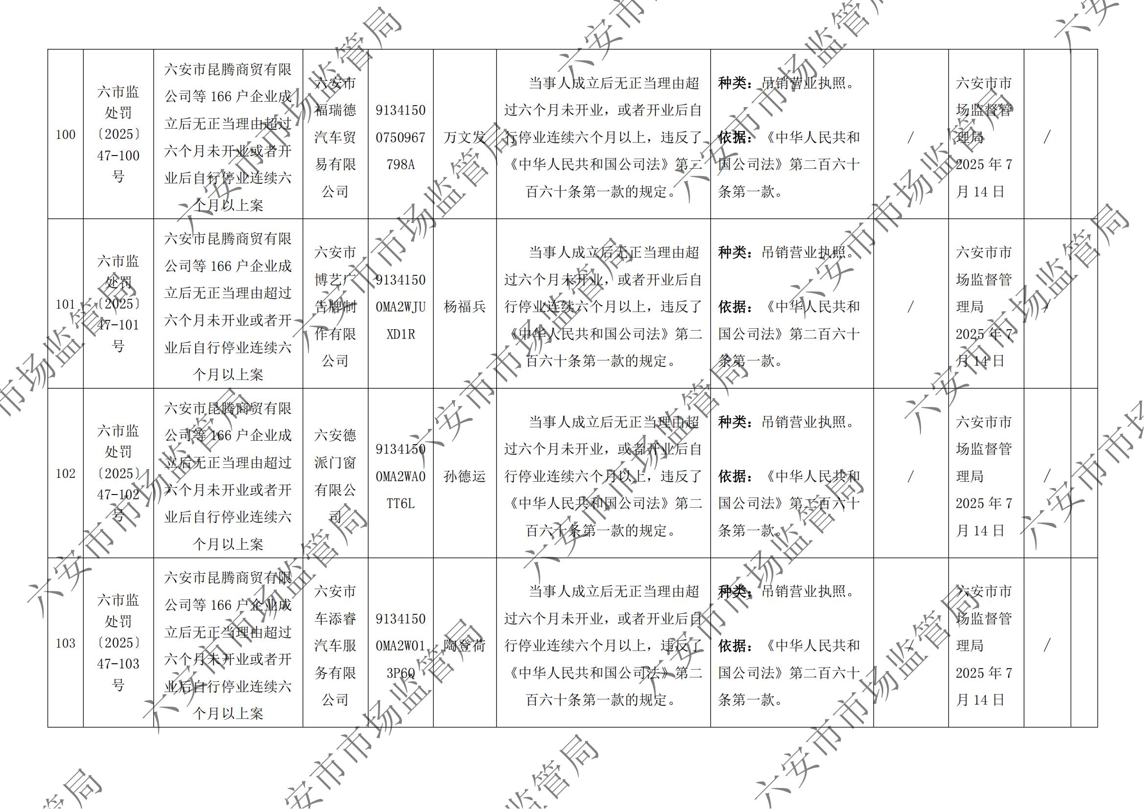 六安市市场监督管理局行政处罚案件信息公开表六市监处罚〔2025〕47号