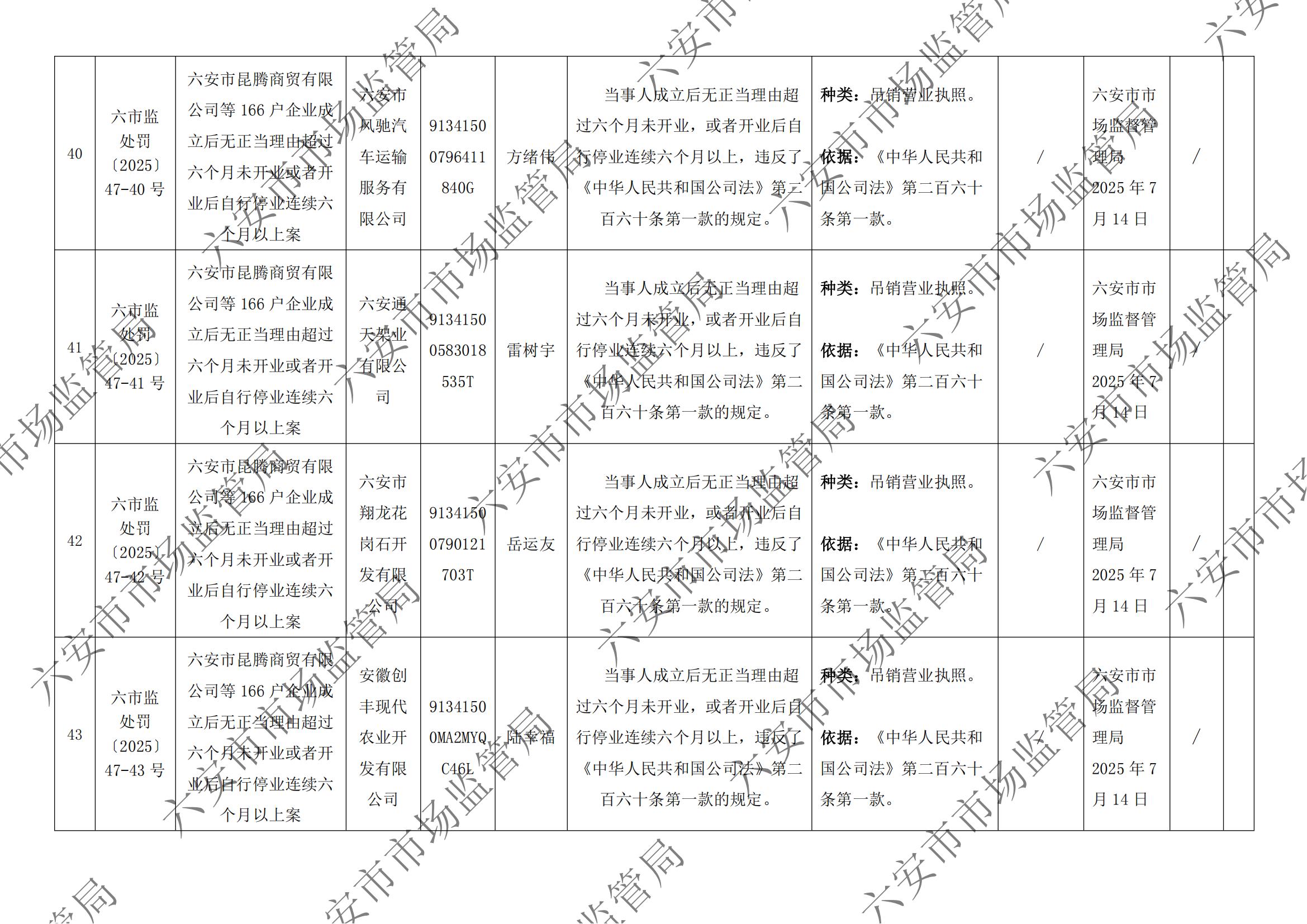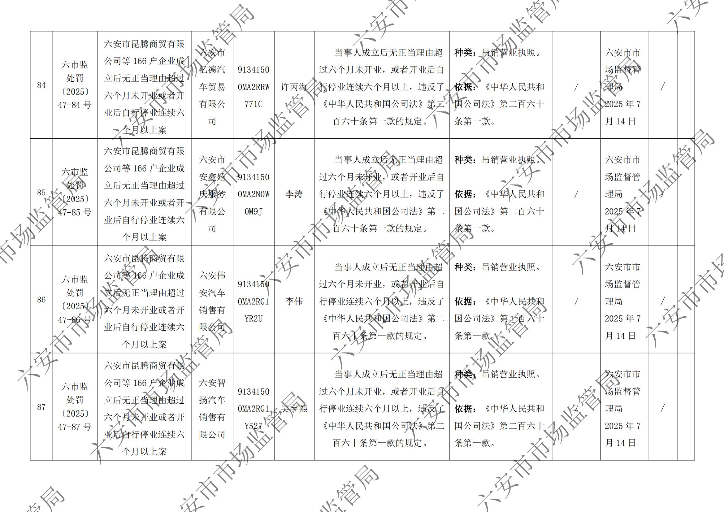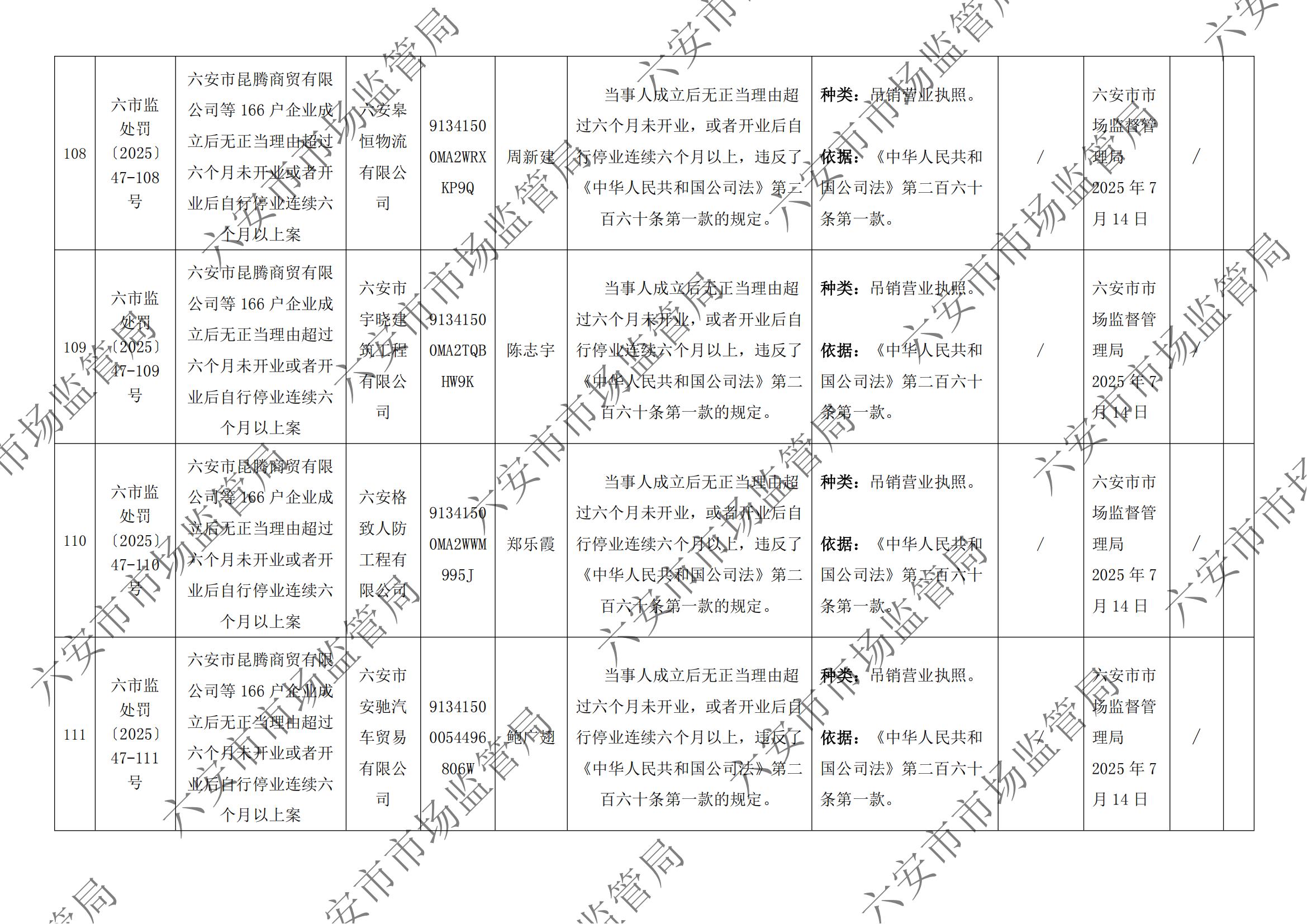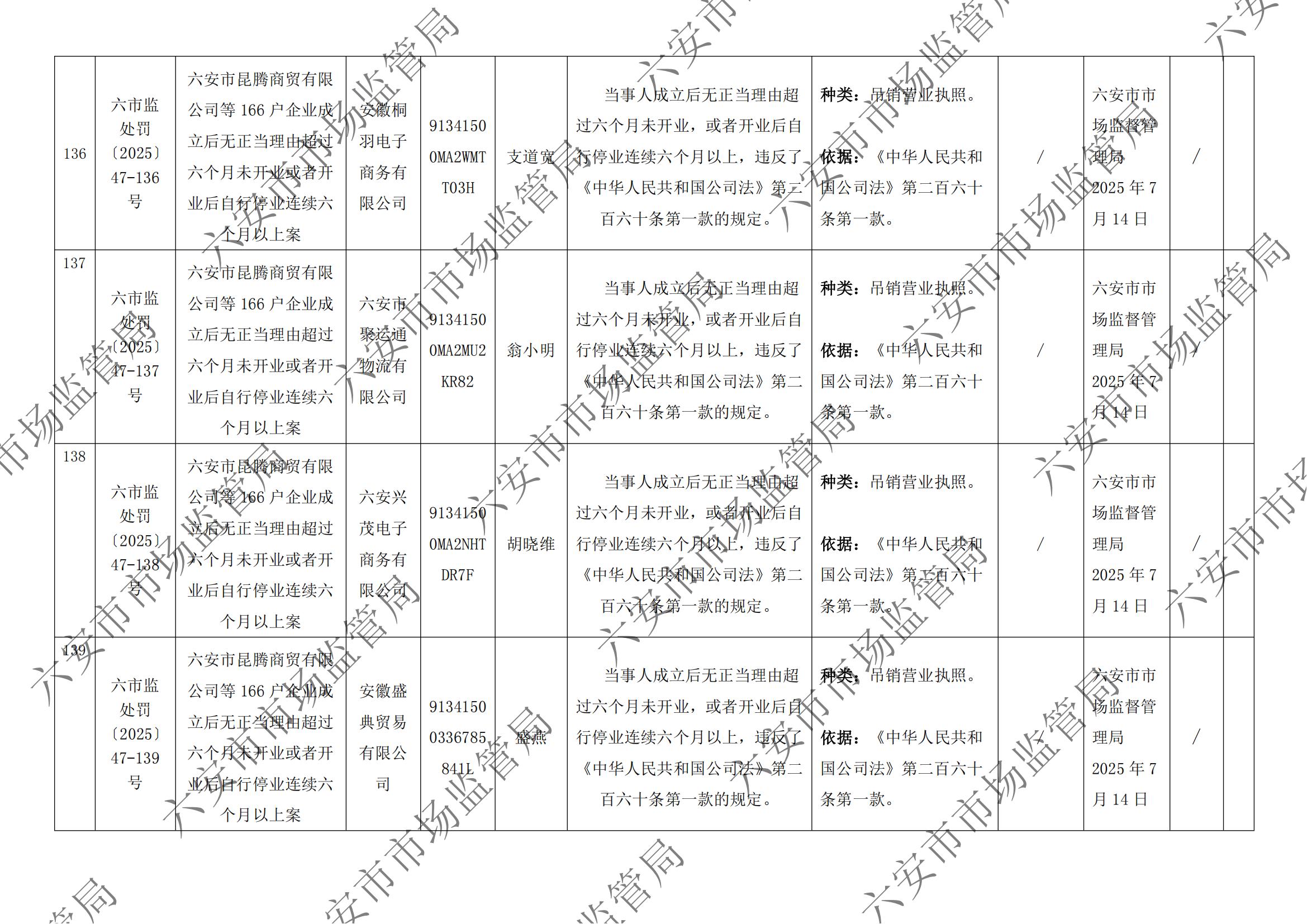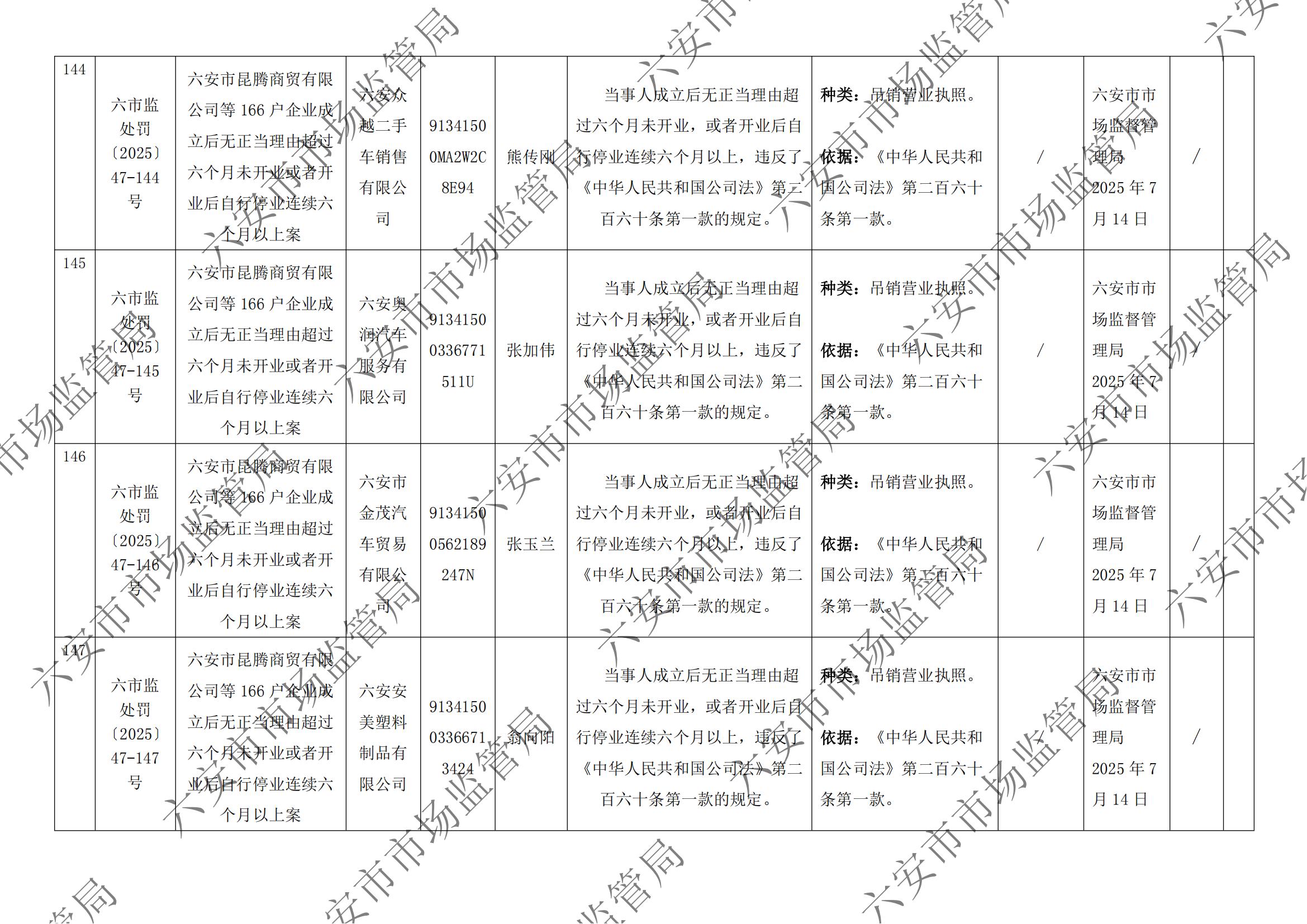 六安市市场监督管理局行政处罚案件信息公开表六市监处罚〔2025〕47号