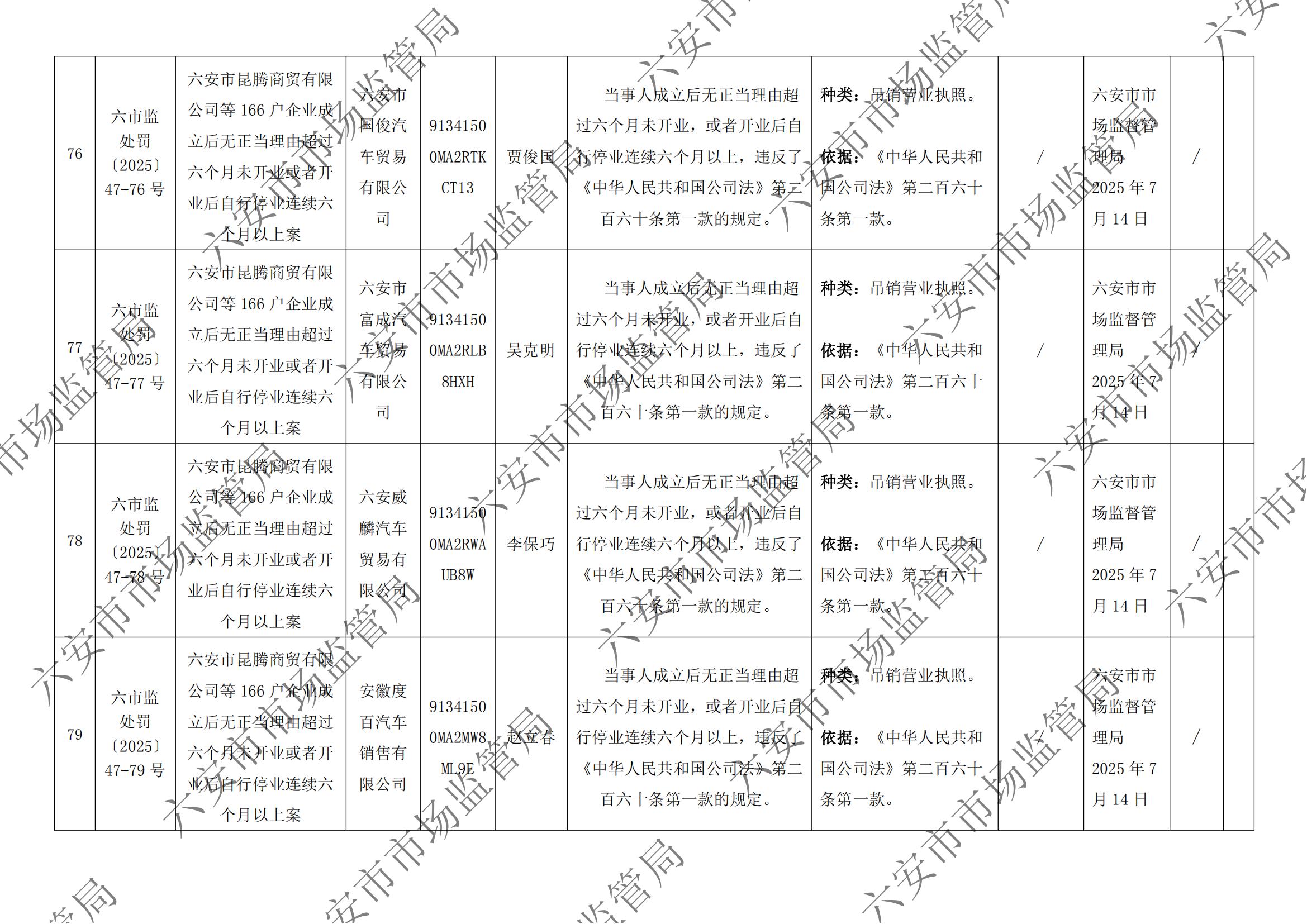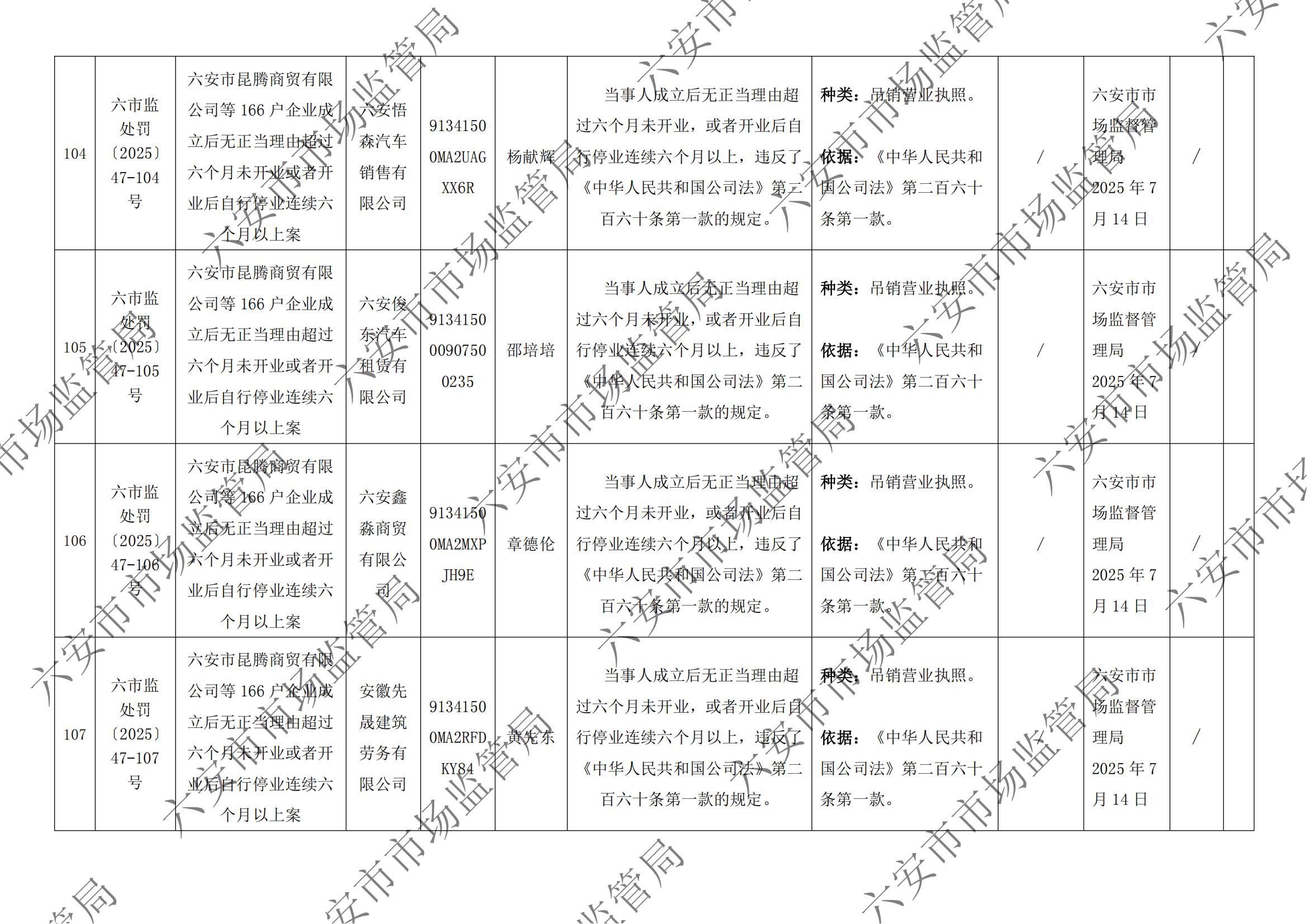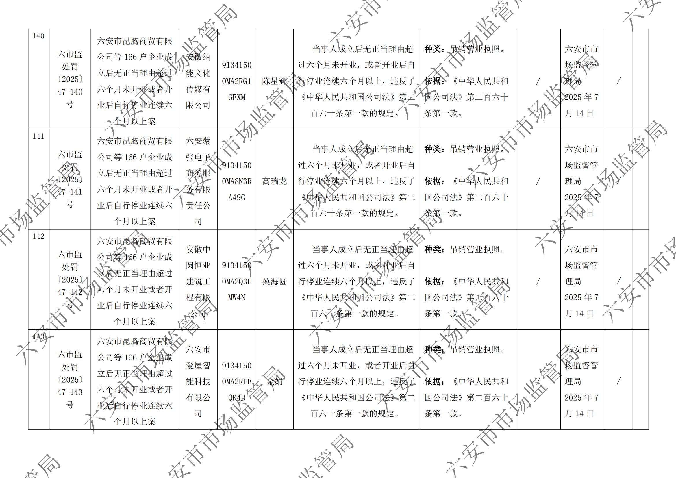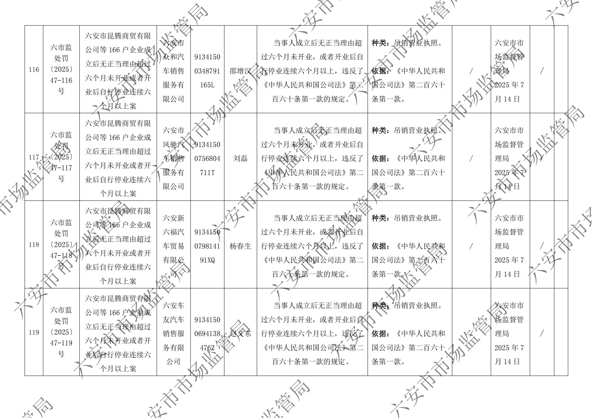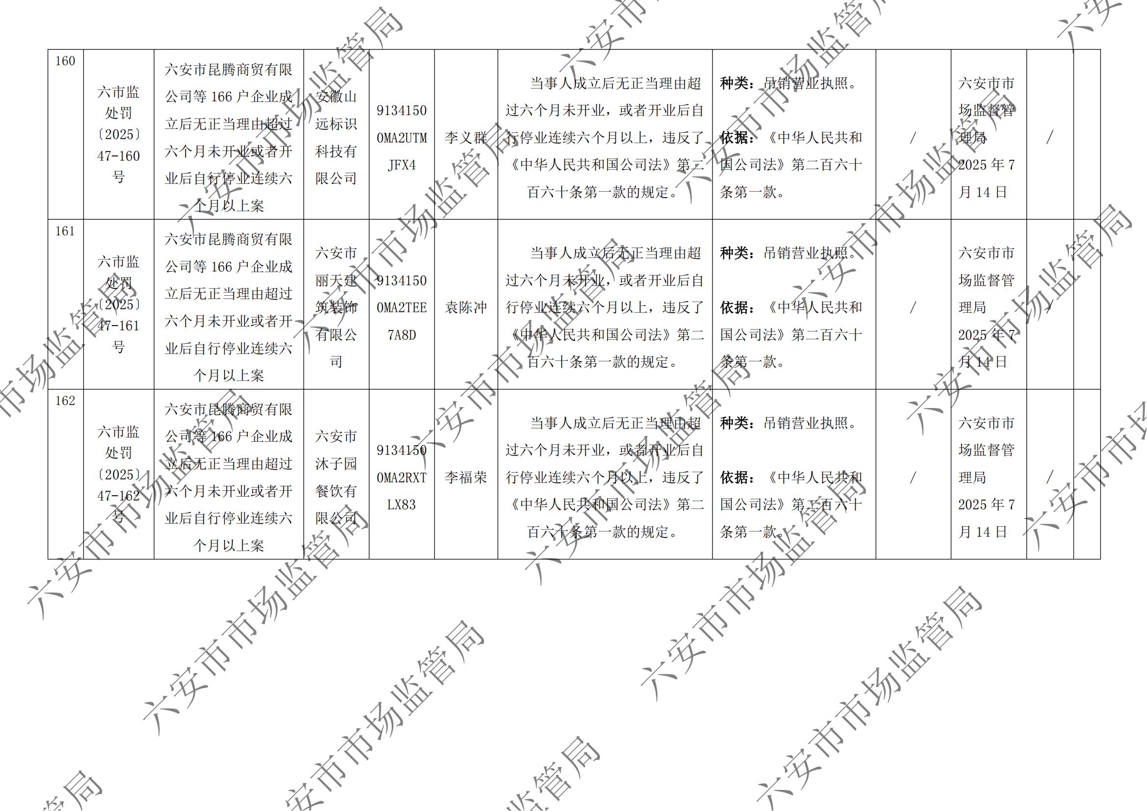 六安市市场监督管理局行政处罚案件信息公开表六市监处罚〔2025〕47号