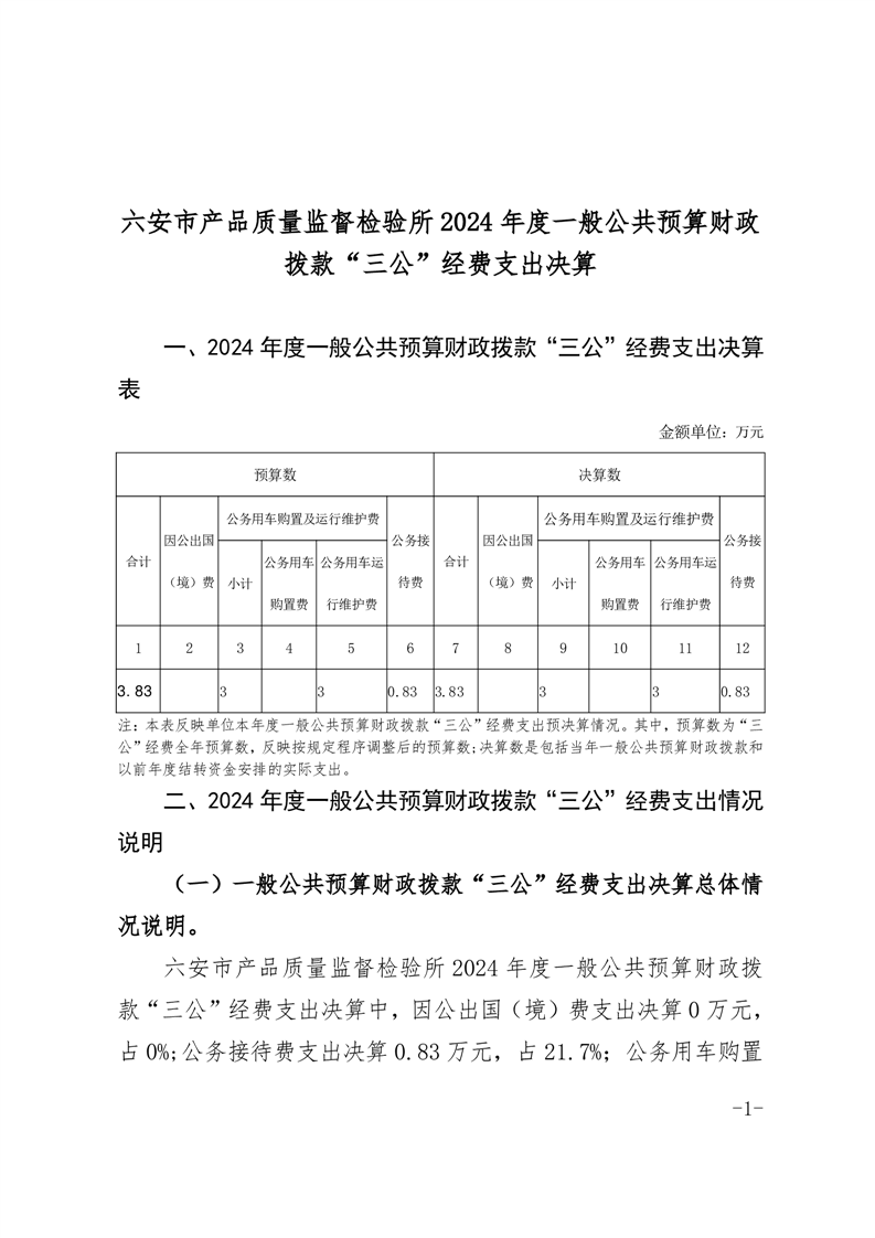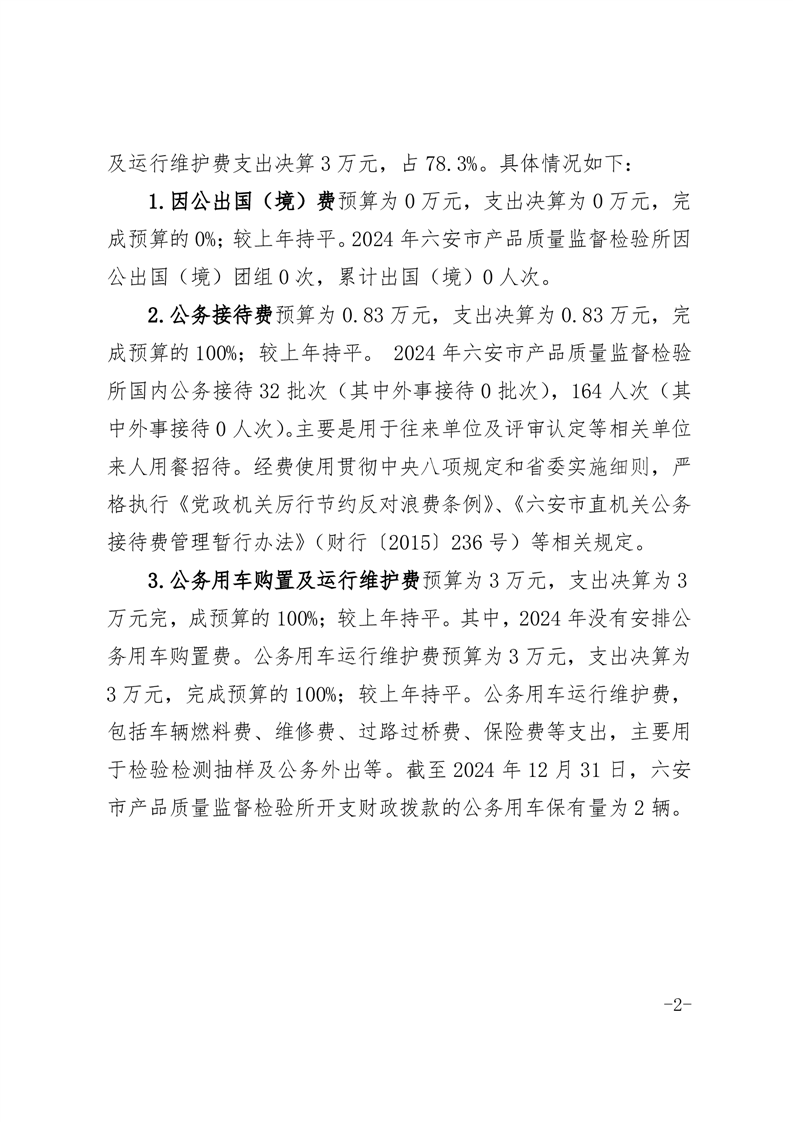 六安市产品质量监督检验所2024年度一般公共预算财政拨款“三公”经费支出决算