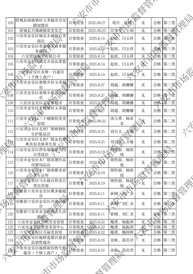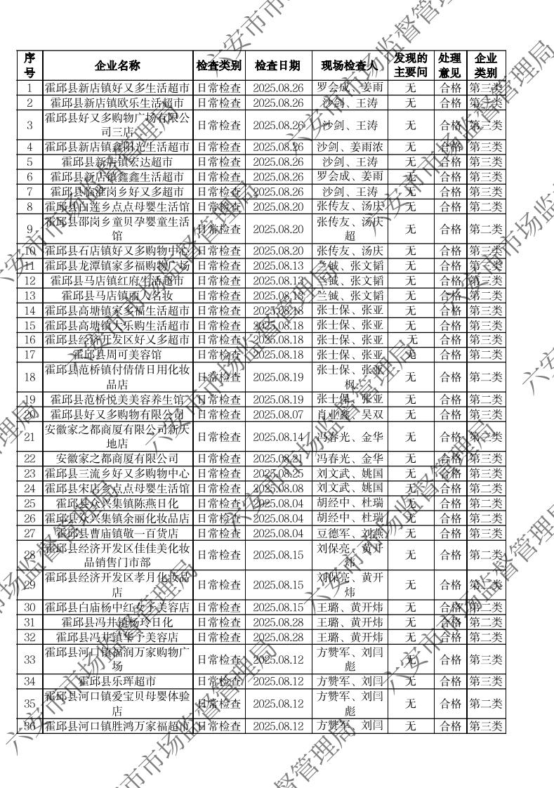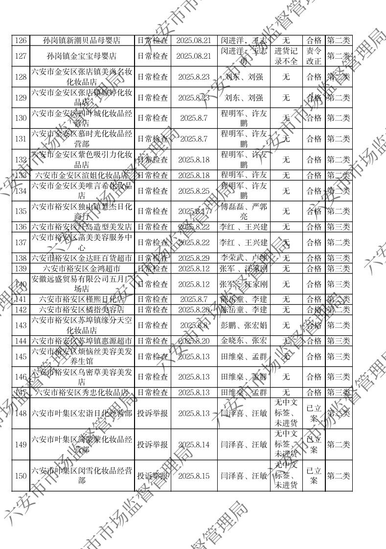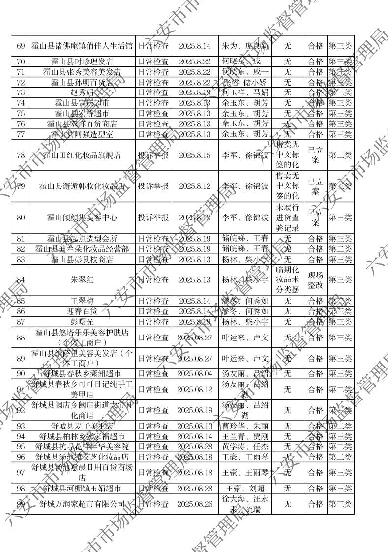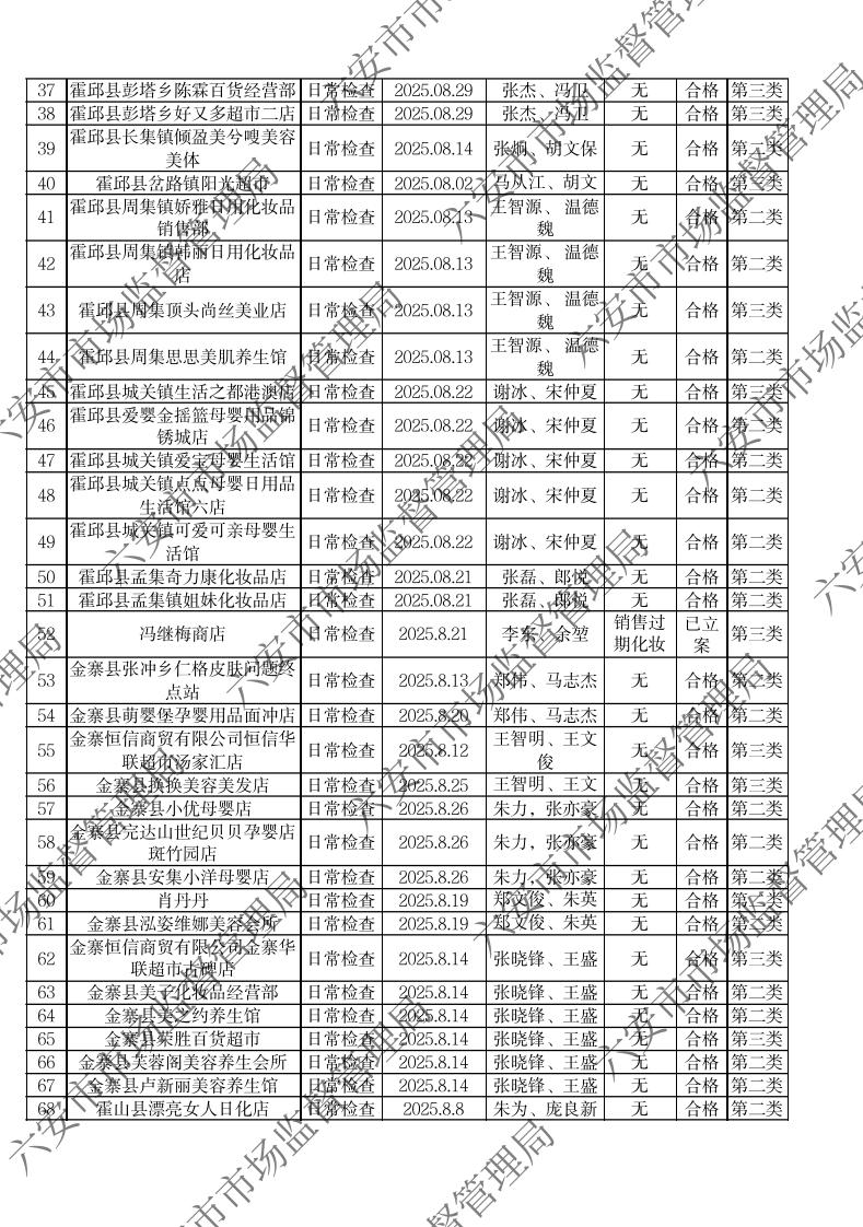 2025年8月化妆品流通环节监督检查公示