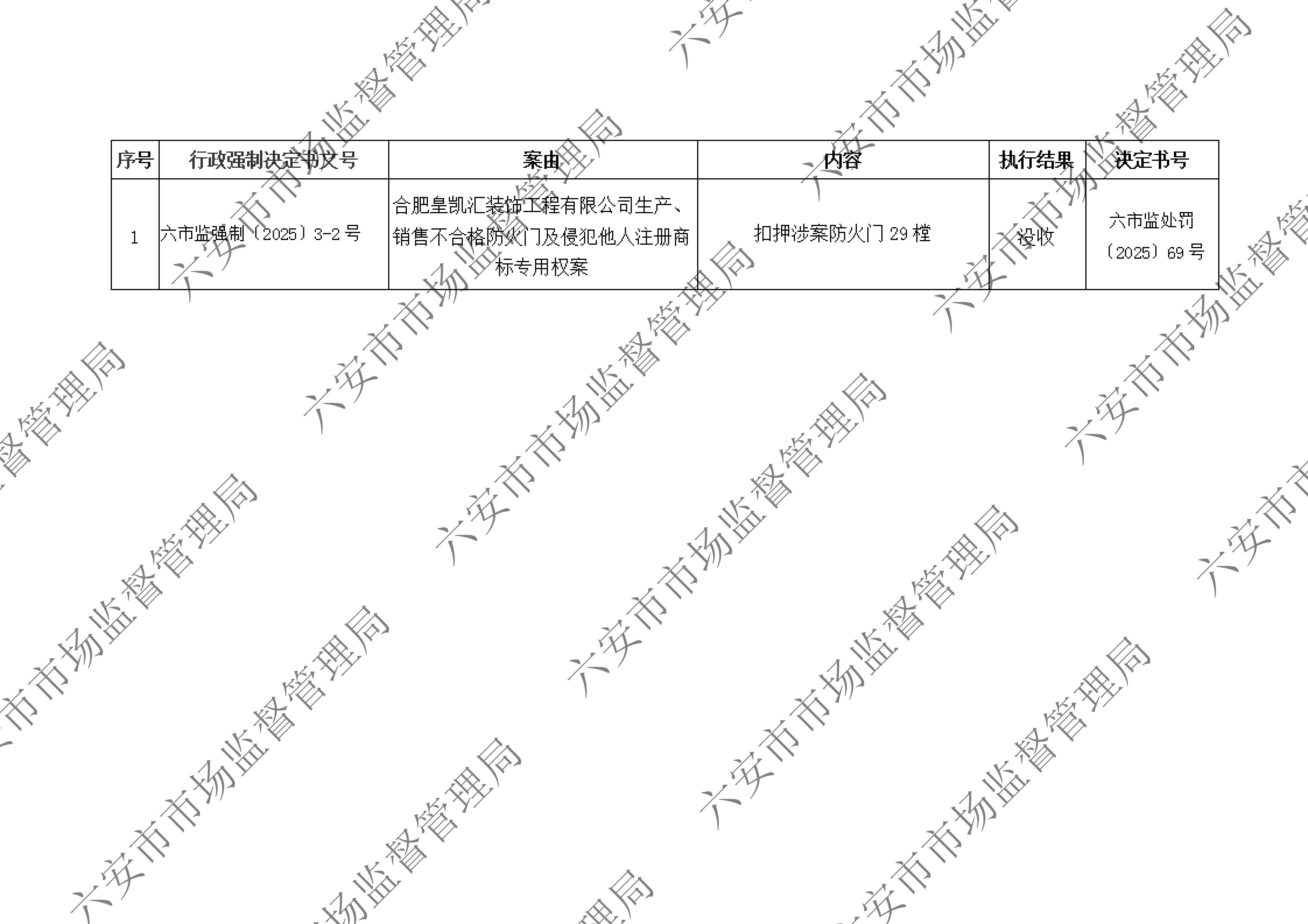 六安市市场监管综合行政执法支队2025年10月份行政强制案件统计表