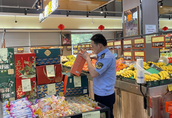 本次检查主要针对茶叶、粽子等节令食品和热销产品,重点检查了包装层数、包装空隙率、包装成本和混装要求等指标,查看是否符合GB23350-2021《限制商品过度包装要求 食品和化妆品》的要求;对商超和农贸市场的电子计价秤进行监督检查,查看是否存在未检定或超过检定周期现象、是否存在“作弊”或“缺斤少两”行为。从现场检查情况来看,暂未发现有违反限制商品过度包装强制性国家标准和计量违法违规行为。在检查过程中,执法人员同步向经营者宣传普及限制过度包装强制性标准有关要求和《中华人民共和国计量法》等法律法规,督促经营者自觉遵守市场秩序,诚信经营。