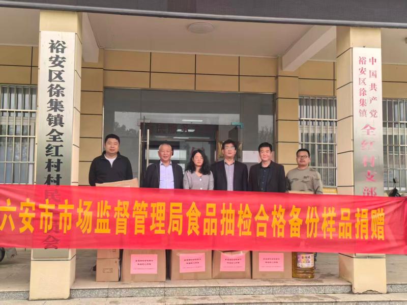 为促进食品安全抽检合格备份样品的合理再利用,推动市场监管食品抽检工作与乡村振兴工作有机结合。4月10日,六安市市场监管局组织人员前往结对帮扶村全红村开展食品安全抽检合格备份样品捐赠活动。