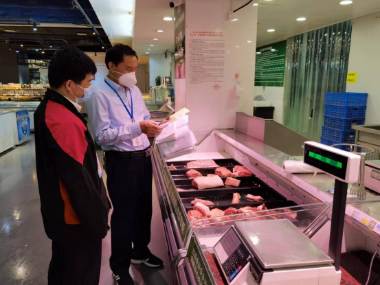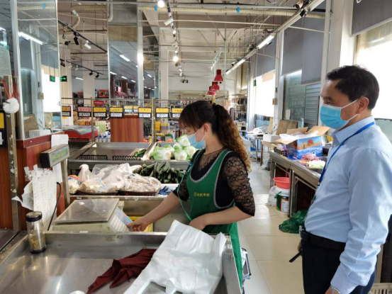 检查组一行重点对相关食品经营单位食品索证索票、进货查验、食品贮存、加工制售、分餐、消毒等情况进行了逐一检查,抽取了猪肉、白菜、辣椒、苹果等部分肉类蔬果商品,核对物价和销售单据,并向企业负责人和相关人员宣传了疫情防控、食品安全等相关法律法规知识。