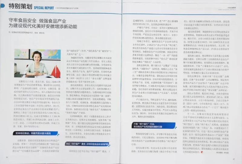 下一步,安徽省市场监管系统将坚持以习近平新时代中国特色社会主义思想为指导,认真贯彻落实习近平总书记考察安徽时提出的强化“两个坚持”、实现“两个更大”的要求,紧紧围绕省政府规划的“到‘十四五’末,全省建成10个千亿级绿色食品产业,打造一批百亿级绿色食品产业集群,壮大一批百亿级绿色食品加工产业园”发展目标,不断提升食品安全全链条监管效能,持续巩固和完善食品安全治理体系,聚力推动食品产业高质量发展,把食品产业打造成为安徽经济发展新的增长点和新的亮点,更好地满足人民群众对食品安全和质量的新期待。