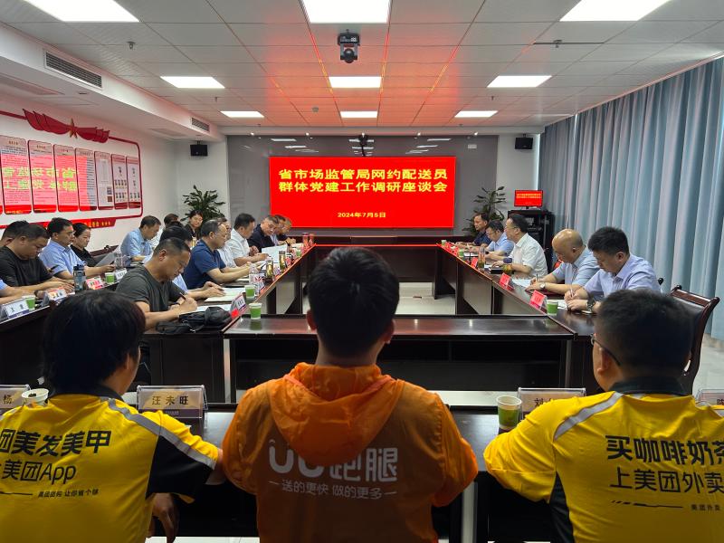 现场调研后,随即在裕安区市场监管局召开“网约配送员群体党建工作”座谈会。市局和裕安区局分别汇报了有关工作进展,分析了工作推动中存在的问题,并提出针对性建议。会上,调研组还与网约配送员代表进行了深入交流,听取困难诉求,并就网约配送员群体普遍关心的交通安全、工资福利、权益保障等问题进行探讨。