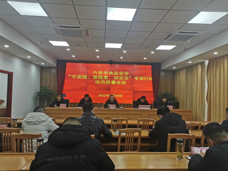 1月30日下午,全省食品安全“守底线、查隐患、保安全”专项行动动员部署电视电话会议结束后,六安市市场监管局立即召开电视电话会议,迅速传达贯彻落实省专项行动会议精神,动员部署全市食品安全“守底线、查隐患、保安全”专项行动。市局党组书记、局长、二级巡视员方厚奇出席会议并讲话。市局党组成员、市食安办专职副主任汪宏春主持会议。市局二级调研员徐辉、四级调研员张道圣,市综合行政执法支队支队长刘永伟参加会议。