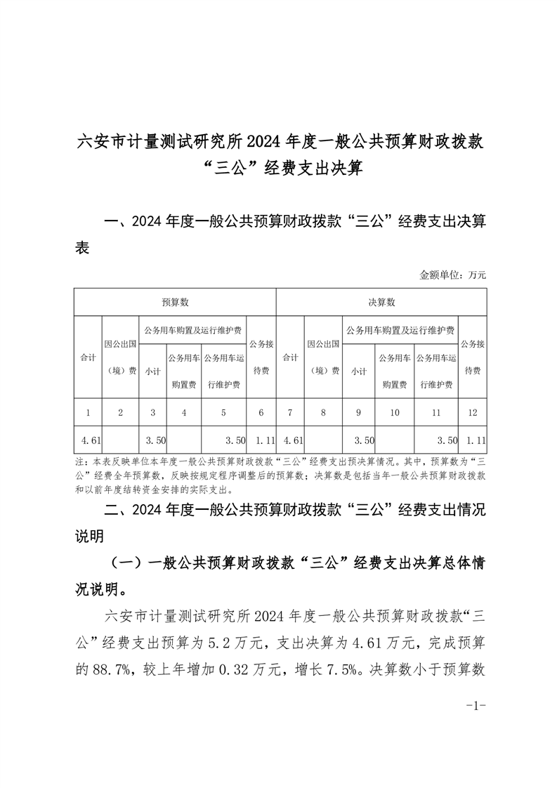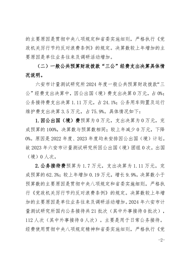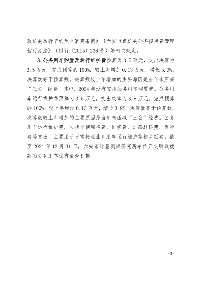 六安市计量测试研究所2024年度一般公共预算财政拨款“三公”经费支出决算