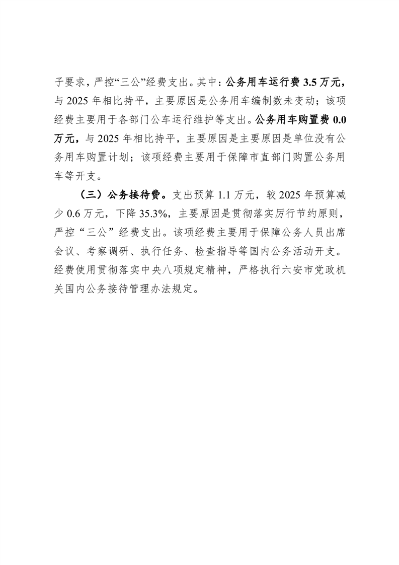 六安市计量测试研究所单位2026年一般公共预算安排“三公”经费情况