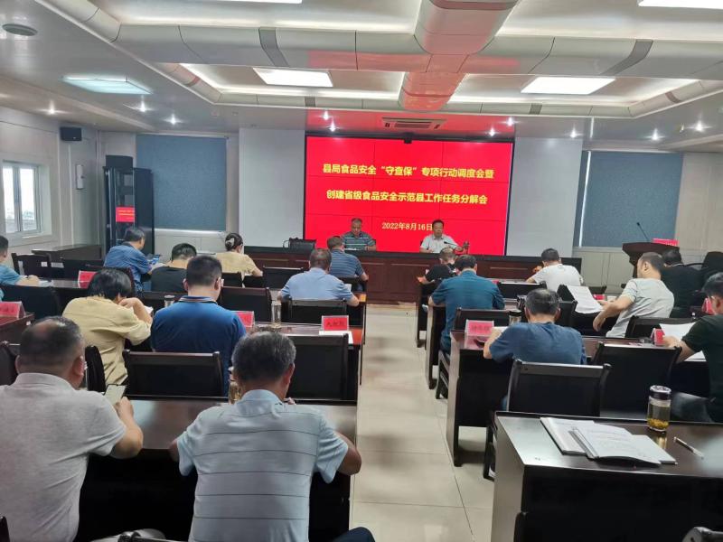 会议对全县食品安全“守底线、查隐患、保安全”专项行动主要内容进行了再解析,对市场监管系统创建安徽省食品安全示范县工作任务进行了再分解与详细解读。