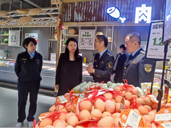 图为:刘颖一行在绿篮子超市督导食品安全“两个责任”