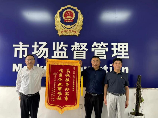 9月26日上午,县市场监管局迎来一批特殊客人,霍邱县友喜食品有限公司将一面印有“真诚服务办实事,情系企业解难题”的锦旗送到县局,以表达对市场监管部门为其企业纾困解难的感谢。
