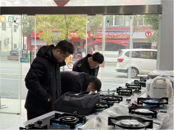 在流通环节,执法人员深入辖区市场,检查电动自行车销售门店8家、消防产品销售门店2家、燃气灶具相关配件销售门店8家、超市1家,通过核查产品合格证、进货台账、质量标识等方式,严厉排查不合格产品流入市场风险。检查中发现1家门店销售的产品存在质量隐患,执法人员当即要求商家现场下架问题产品,杜绝隐患产品继续销售。同时开展产品质量监督抽查工作,累计完成6组样品抽检,目前抽检结果未出。
