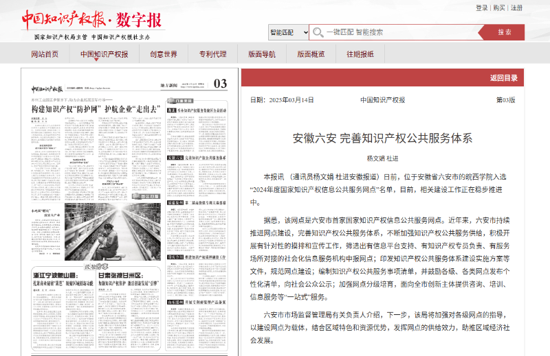 中国知识产权报:安徽六安 完善知识产权公共服务体系