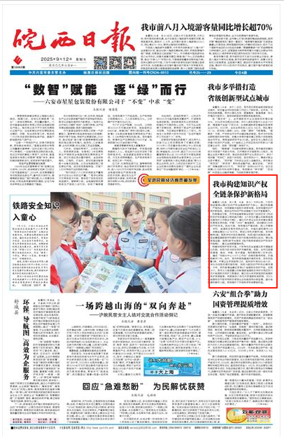 本报讯(杜进 陆小曼 记者 张玉)今年以来,六安市市场监管局以强化知识产权全链条保护为核心,通过机制建设、严格执法、体系赋能与地标引领等举措,加快构建知识产权保护新格局,推动全市知识产权治理能力与水平显著提升。